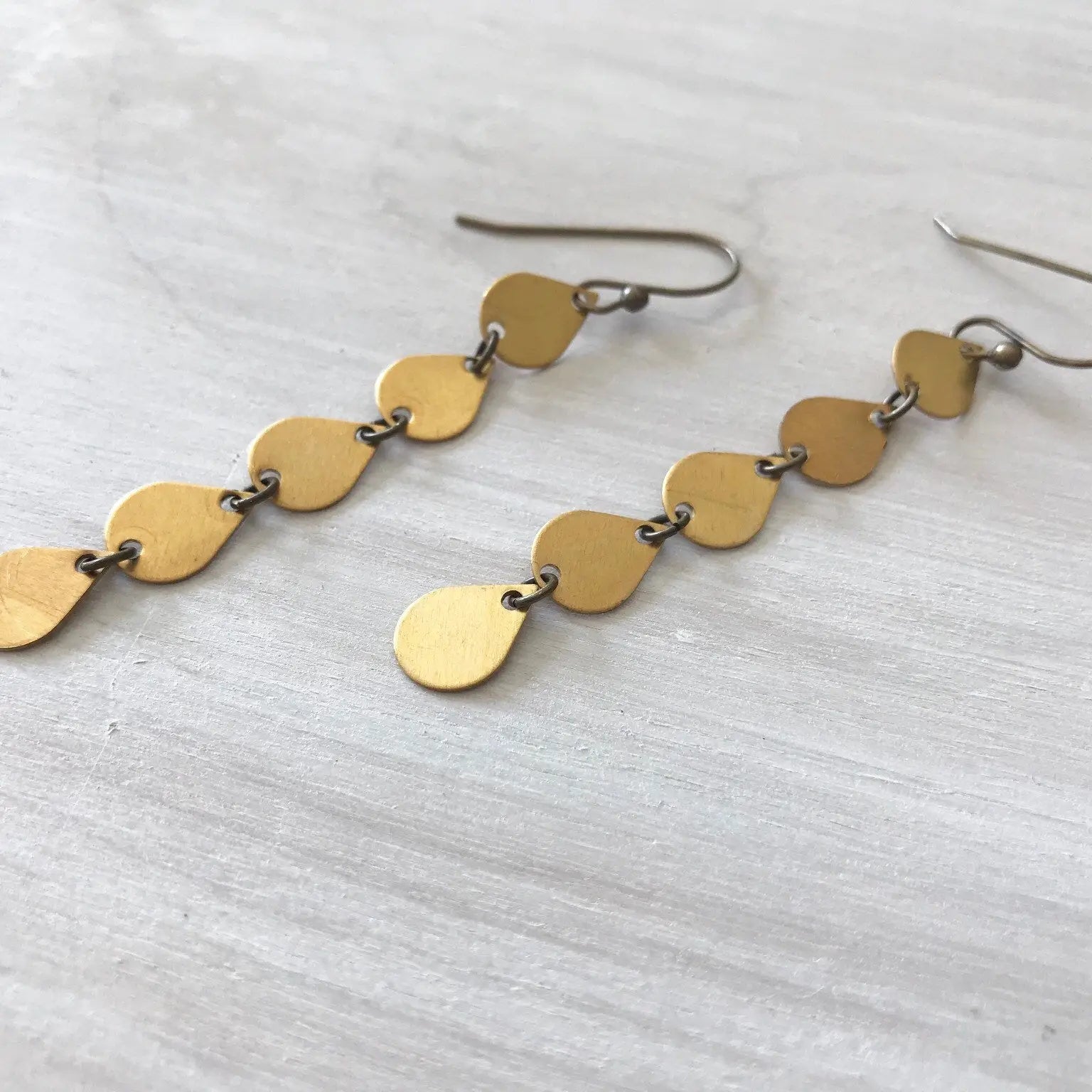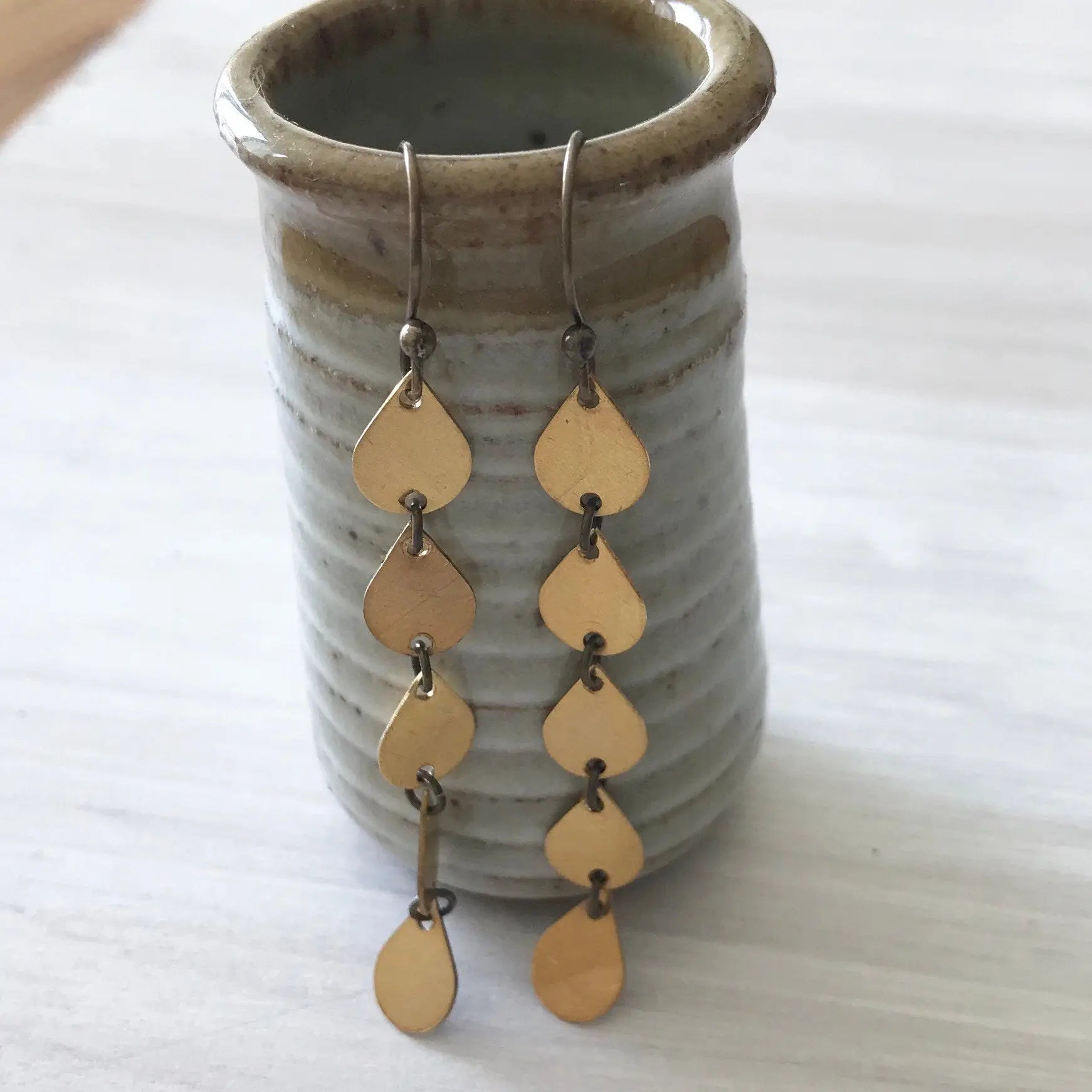 Bronze teardrop dangle earrings , waterfall earrings , shoulder dusters, festival earrings, bohemian earrings, boho earrings, boho bride Simple and elegant brass teardrop earrings are lightweight while making a big impact. You choose your length is 3 drops, 5 drops, 7 drops, or 9 drops. Model is wearing the 7 teardrops. Ear wires are nickel free for comfort.