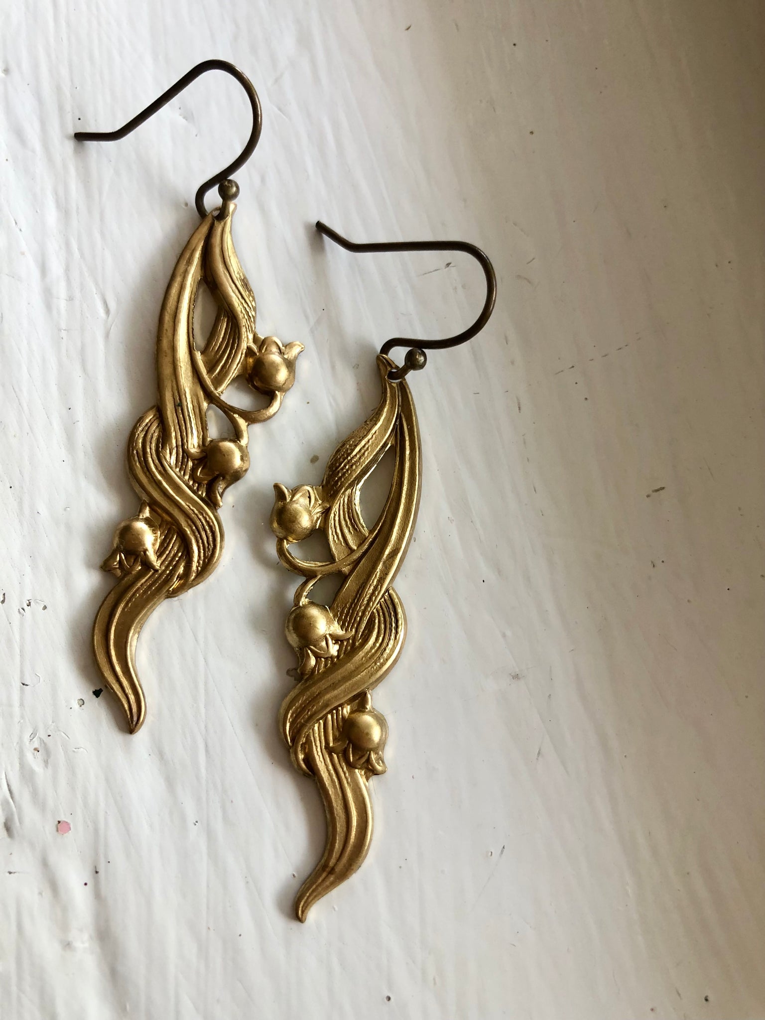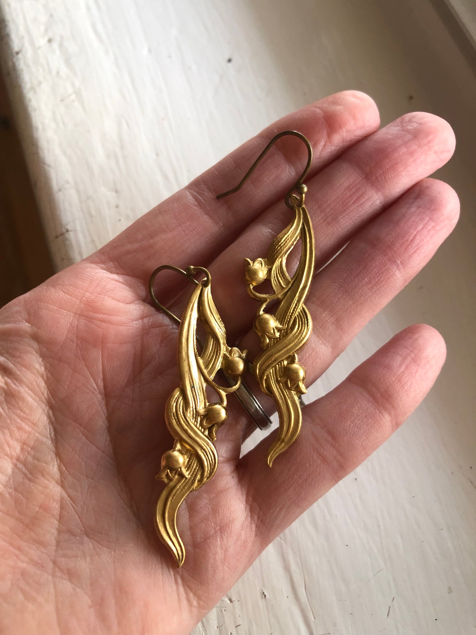 Beautiful gold lily of the valley earrings have a vintage feeling. Very lightweight and nickel free ear wires.